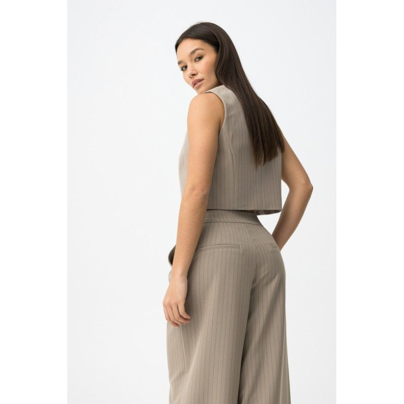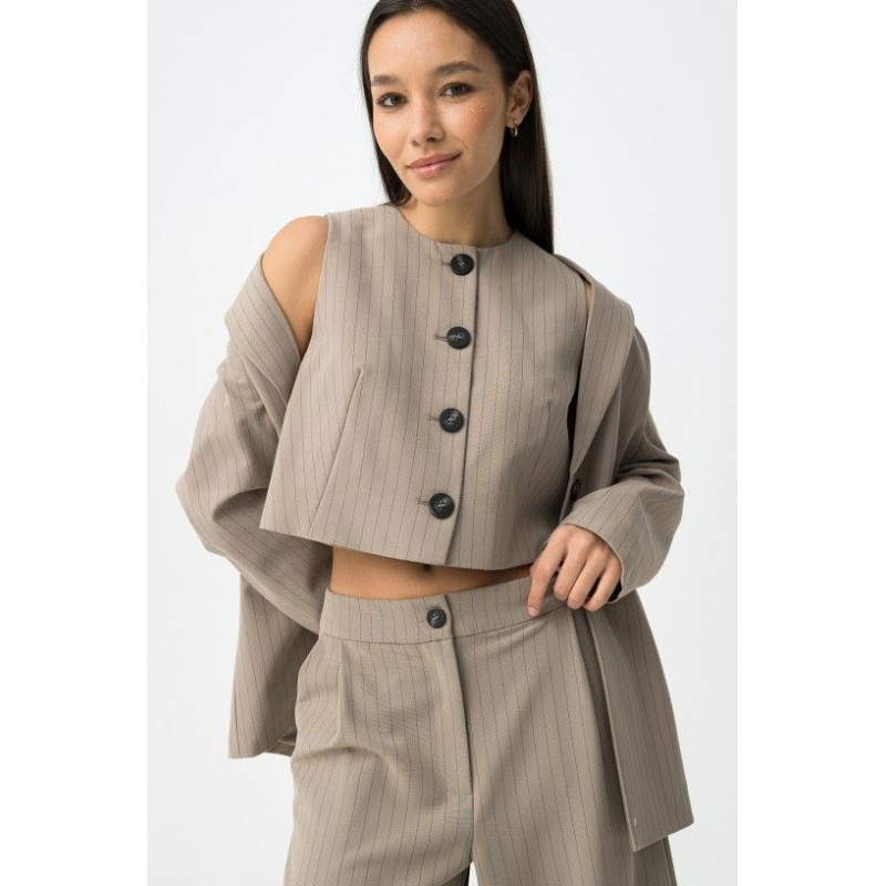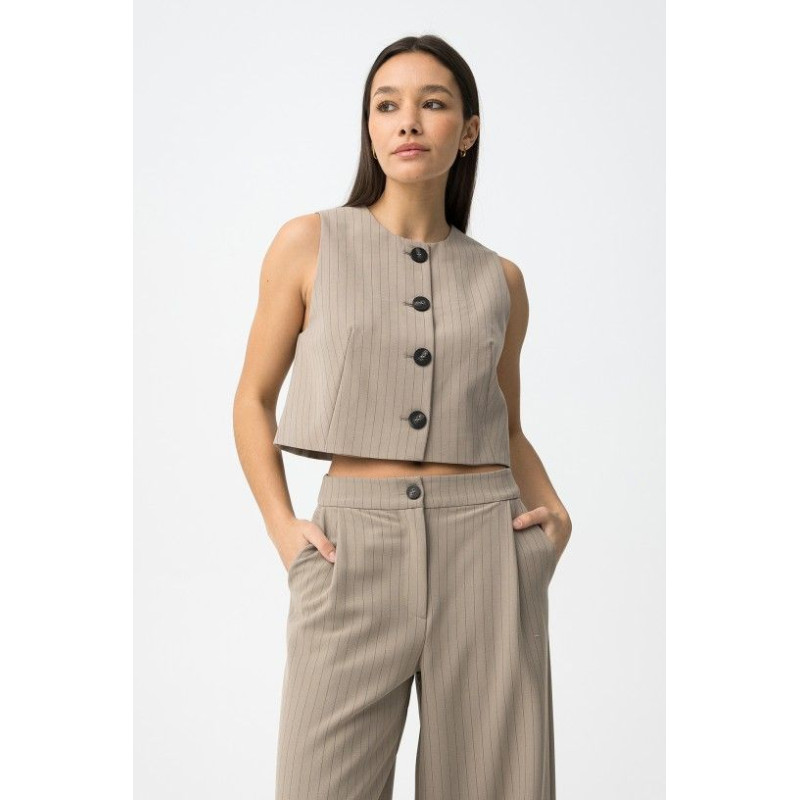 Chaleco de corte slim en color beige con botones grandes y diseño sin mangas.
